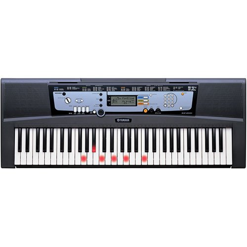 Comedy may be hard but music is easy to play. Whether you're just starting to play or are a seasoned pianist, the portable Yamaha EZ-200 is a perfect, affordable choice. Yamaha EZ-200 lighted keyboard gives you a high-quality instrument with 61-touch sensitive keys that provides a great learning tool for beginners. Lighted key guides, used in conjunction with the integrated Yamaha Education Suite teaching system, give you the ability to learn visually while enjoying the feel of real piano-sized keys and great sounds on the EZ-200. Also included are 367 voices (General MIDI and XGlite-compatible), nine reverb settings, and 32-note polyphony. An easy-to-read LCD screen is also included on the EZ-200 lighted keyboard. The keyboard can run off of a power adapter or six optional ''AA'' batteries, allowing you to use it anywhere. MIDI input and output connectors let you hook into your Mac or PC, or other MIDI-capable instruments. A pedal input allows you to connect a sustain pedal (purchased separately) for a more realistic piano experience. At school, at home, or in the park, Yamaha EZ200 makes playing and creating music...easy. Rhythm and percussion Maintaining Tempo is really easy with the built-in Metronome MIDI input and output connectors let you connect to your Mac or PC, or other MIDI-capable instruments / Optional software is available for your computer to let you sequence, create, and score your music - even burn your compositions to CD or DVD through PC or Macintosh Headphone output jack Unit Dimensions (WxDxH) 37.25 x 13.7 x 4.3 (945 x 348 x 110mm); Weight 10.4 lbs (4.7kg) Includes AC Adapter