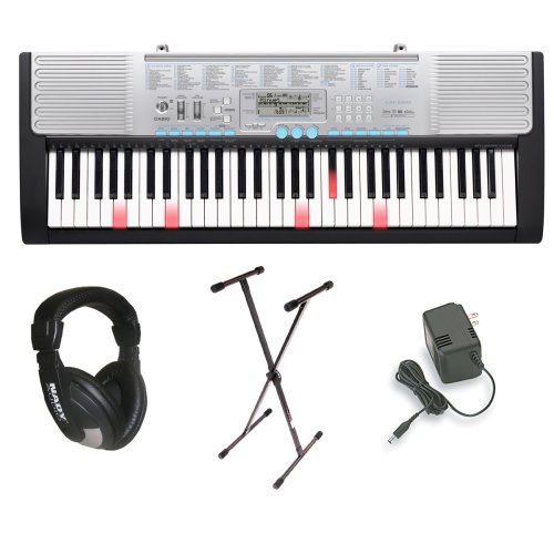 Casio LK220 Premium Keyboard Pack with Power Supply, Keyboard Stand and Professional Closed Cup Stereo Headphones