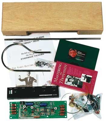 Customize your cabinet, work with your hands, and save a few bucks. The build-it-yourself kit has an unfinished wood cabinet and pre-built circuit board. Several wiring points require soldering. 110v power supply is included (for use in U.S. or Canada). All Etherwaves ship with two videotapes: Clara Rockmore: the Greatest Theremin Virtuosa, and Mastering the Theremin, featuring Lydia Kavina.What is a Theremin?The theremin is one of the oldest electronic instruments, and the only one known that you play without touching. Moving your hands in the space around its antennas controls pitch and volume. Like the Ethervox, the Etherwave is an authentic adaptation of inventor Leon Theremins original design.The Etherwave KitIf you can read a diagram, solder, and use basic hand tools, you should be able to build this theremin in an evening or two. The kit includes a pre-assembled and tested circuit board, an unfinished hardwood cabinet, nickel-plated brass antennas, and detailed assembly, test, and customization instructions.110v power supply is included.